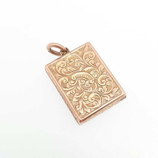 Antique 9ct 9k Rose Gold Locket Victorian Rectangular All Solid 9kt 375 Pendant Hallmarked Hand Engraved Necklace Vintage Jewelry Jewellery