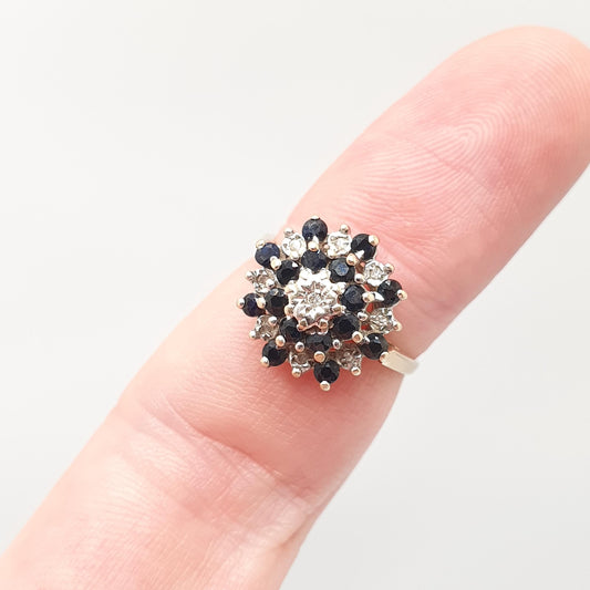 Vintage Diamond & Sapphire 9kt Gold Ring Cluster Solid 9ct 9k Genuine Gemstone Fine Estate Womens Jewelry Jewellery