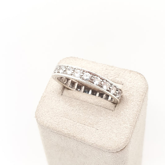 Antique 9ct 9k White Gold Eternity Ring White Spinel Art Deco 1920s Full Band Large Size Solid 375 Vintage Sparkly Womens Jewelry Jewellery