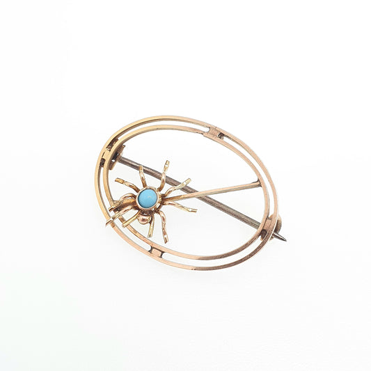 Antique 9ct Gold Spider Brooch Pin Turquoise Solid 9k 9 carat 375 Edwardian Arachnid Insect Bug Womens Vintage Jewelry Jewellery