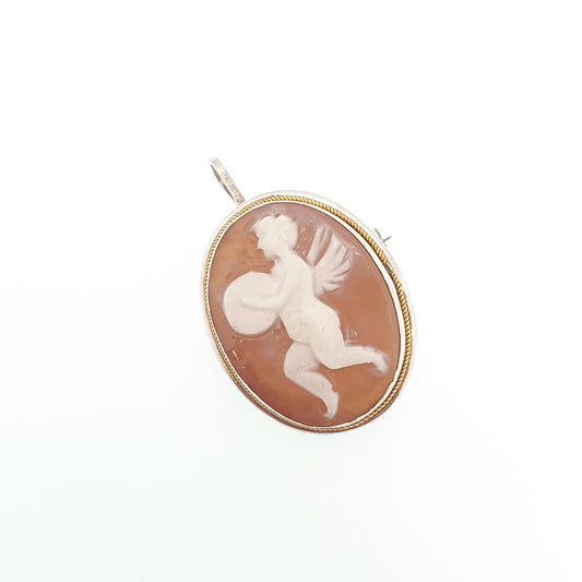 Vintage Sterling Silver Cherub Cameo Necklace Pendant Brooch Cute Shell Hand Carved Italian Solid 925 Small Jewelry Jewellery Jewelry