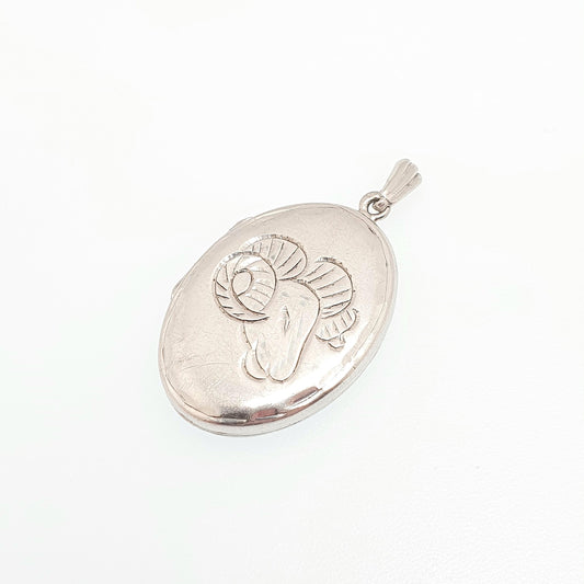 Vintage Sterling Silver Locket Aires Ram Zodiac Pendant Necklace Engraved 1972 Hallmark Astrological Solid 925 Jewelry Womens Jewellery