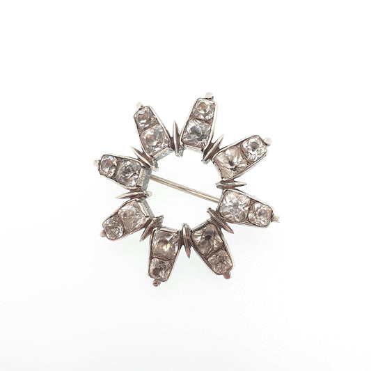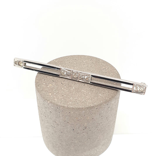 Antique Sterling Silver Diamond Paste Brooch Art Deco Enamel Geometric 1920s Vintage Flapper Solid 925 Womens Ladies Jewellery Jewelry