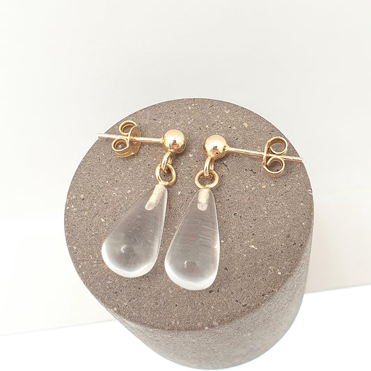 Vintage 9k 9ct Gold Rock Crystal Earrings Clear Quartz Teardrop Hanging Drop Stud Solid 9 375 Real Gemstone Genuine Womens Jewelry Jewellery
