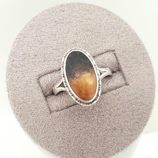 Antique Victorian Blue John Sterling Silver Ring Large Signet Cabochon Bleu Jaune Vintage 1920s Womens Rare Gemstone Jewelry Jewellery