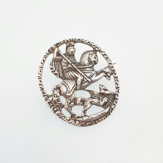 Antique George & Dragon Solid Silver Brooch Early Victorian Possibly Georgian St George Horse Knight Rare Unique Jewelry Womens Jewellery