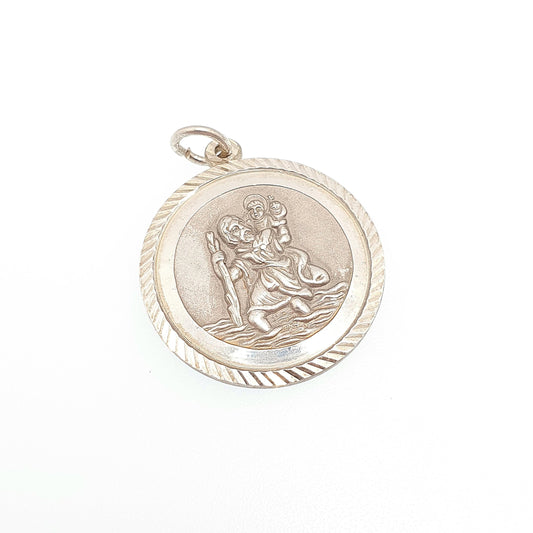 GEORG JENSEN Vintage Sterling Silver St Christopher Pendant Necklace Small Hallmark Genuine Saint Jewellery Jewelry Men Women 925 Travel