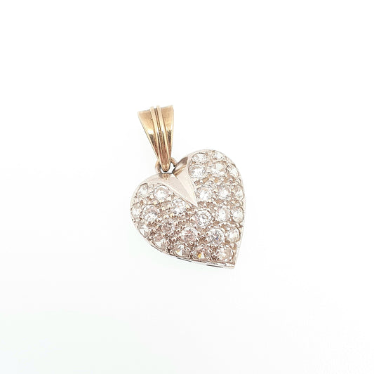 Vintage 9ct 9k Gold Heart Pendant CZ Gemstone Necklace Diamond Simulant Solid 375 Pave Set Cute Yellow Retro Gift Womens Jewelry Jewellery