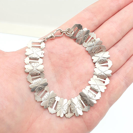Antique Victorian Silver Plate Book Chain Bracelet Bookchain Fancy Link 20.5cm 13.32g Heart 1800s Vintage Albertina Womens Jewellery Jewelry