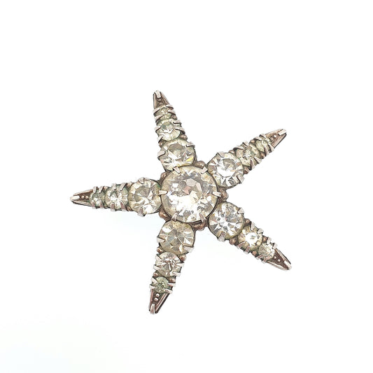 Antique Sterling Silver Star Brooch Diamond Paste Sparkly Shooting Stars 5 Point Starfish Pastes Gift Celestial Vintage Jewellery Jewelry
