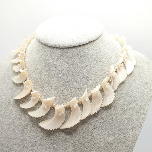 Antique Victorian Mother of Pearl Necklace Jagged Teeth Hand Carved Genuine Shell Lace Collar Twist Frill Pendants Womens Jewellery Jewelry