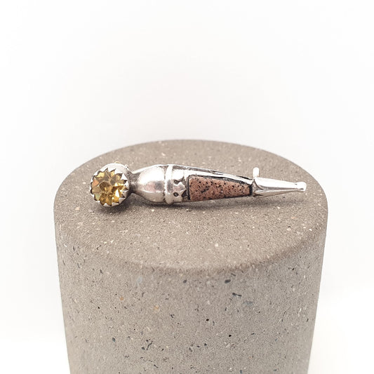 Antique Scottish Dirk Sterling Silver Brooch Pin Aberdeenshire Granite Citrine Paste 1916 Hallmark Vintage Mens Womens Jewelry Jewellery
