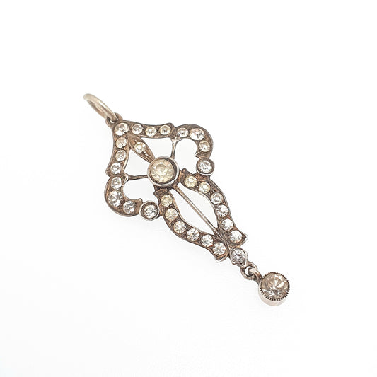 Antique Victorian Solid Silver Diamond Paste Necklace Pendant Art Nouveau Old Cut Hanging Dangling Ornate Sparkly Foiled Womens Jewelry