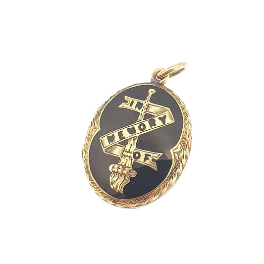 Antique Victorian Mourning Locket Solid 15ct 15k Gold In Memory Of Black Enamel 625 All Gold Small Oval Gift Necklace Pendant Gothic Vintage