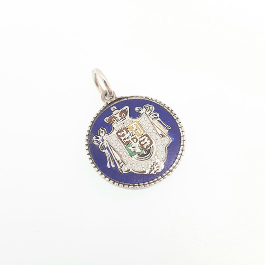 Antique Solid Silver Enamel Crest Charm Pendant Coat of Arms Necklace Coin Style Lucky Good Luck Mens Womens Jewelry Vintage Jewellery