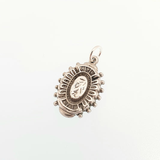 RESERVED/SOLD DON Antique Victorian Solid Silver Pendant Charm Necklace Etruscan Beaded Engraved Sweetheart Genuine 1800s