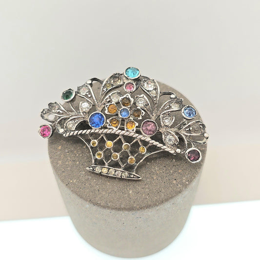 Antique Solid Silver Victorian Giardinetti Brooch Paste Little Garden Flower Basket Large Italian Gift Vintage Womens Jewelry Jewellery