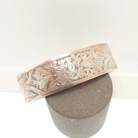Antique Victorian Sterling Silver Snap Bracelet Bangle 1885 Hallmarked 21.78g Gold Vermeil Hand Engraved Solid 925 Vintage Jewelry Jewellery