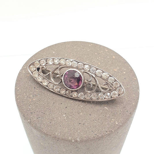 Antique Solid Silver Amethyst Paste Brooch Victorian Diamond Pastes Cluster Ellipse Eye Shape 1800s Genuine Vintage Womens Jewelry Jewellery