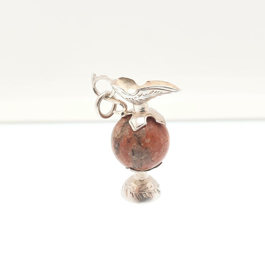 Antique Victorian Solid Silver Wine Jug Charm Pendant Pink Aberdeenshire Granite Necklace Scottish Genuine 1800s Womens Jewellery Jewelry
