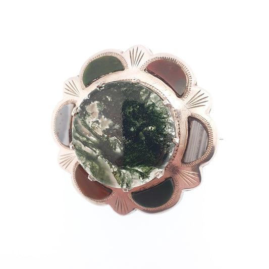 ROBERT ALLISON Vintage Sterling Silver Scottish Brooch Moss Agate Large Pin 1967 Bloodstone Jasper Antique Style Celtic Jewelry Jewellery
