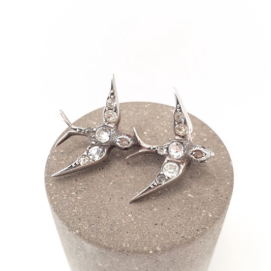 Antique Sterling Silver Victorian Paste Bird Brooch Diamond Foiled Pastes Pair of Songbirds Swallows Cute Birds Vintage 1800s Ladies Womens