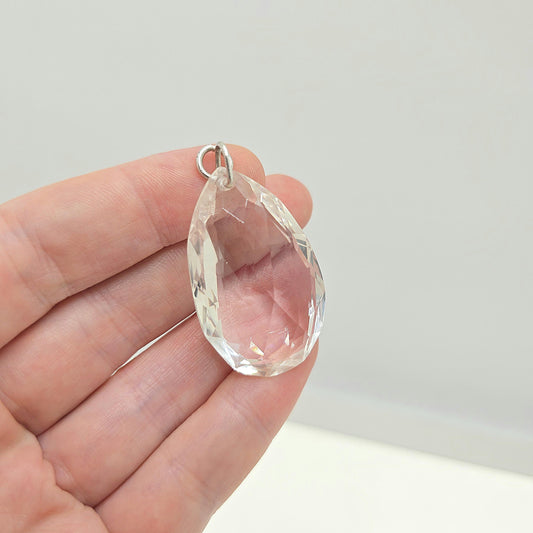 Antique Rock Crystal Quartz Solid Silver Pendant Necklace Art Deco Large Big Faceted 1920s Gemstone Clear Style Womens Jewelry Jewellery