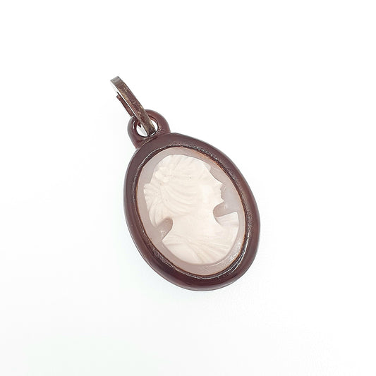 Antique Cameo Necklace Pendant Faux Tortoise Shell Early Plastic Hand Carved Handmade Italian Vintage Womens Jewelry Jewellery