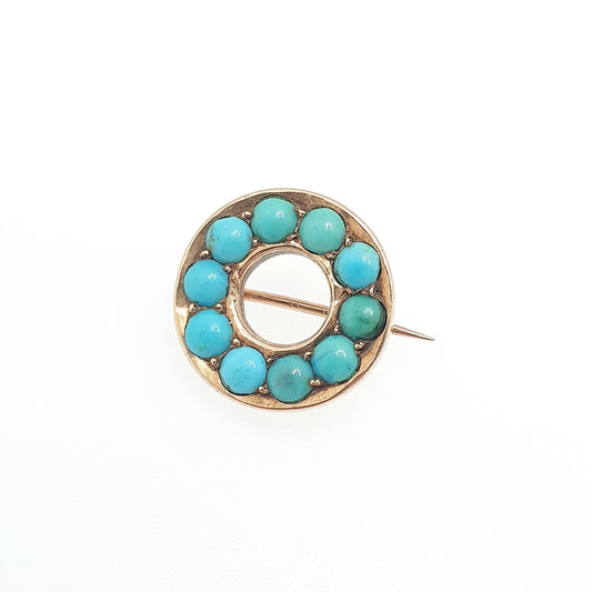 Antique Victorian 9ct Gold Turquoise Brooch Infinity Circle Donut Polo Solid 375 9k Natural Gemstones Halo Vintage Jewelry Jewellery Vintage