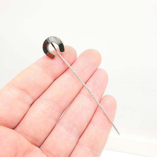 Antique Solid Silver Horseshoe Stick Pin Scottish Bloodstone Agate Jasper Victorian Scottish Lucky Good Luck Lapel Jacket Jewellery Jewelry