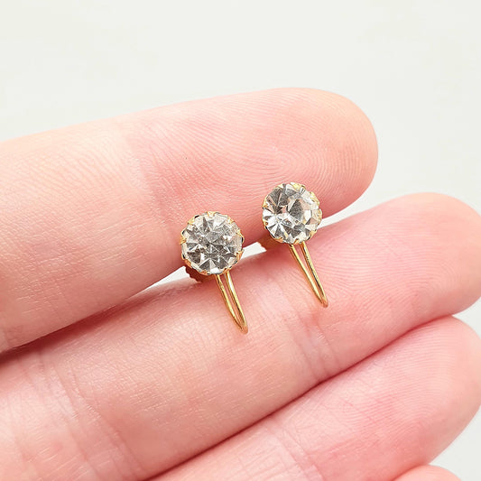 Antique 9k 9ct Gold Diamond Paste Earrings Solitaire Solid 375 Screw Back Sparkly Foiled Glass Vintage Dress Womens Jewellery Jewellery