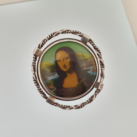 Antique Sterling Silver MONA LISA Brooch Art Deco Portrait TLM Painted Leonardo Da Vinci Vintage Thomas Mott Womens Ladies Jewellery Jewelry