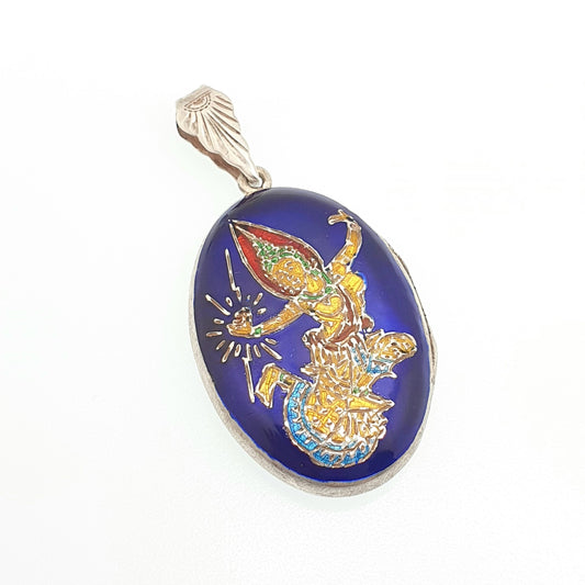 Vintage Sterling Silver Blue Enamel Locket Large Big Siam Cloisone Engraved Pendant Oval 1970s Photo Picture Solid 925 Jewelry Jewellery