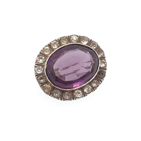 Antique Georgian Paste Amethyst Brooch Pin Solid Silver Cluster Large Oval Cut Foiled Pastes Lilac Vintage 1800s Womens Jewelry Jewellery