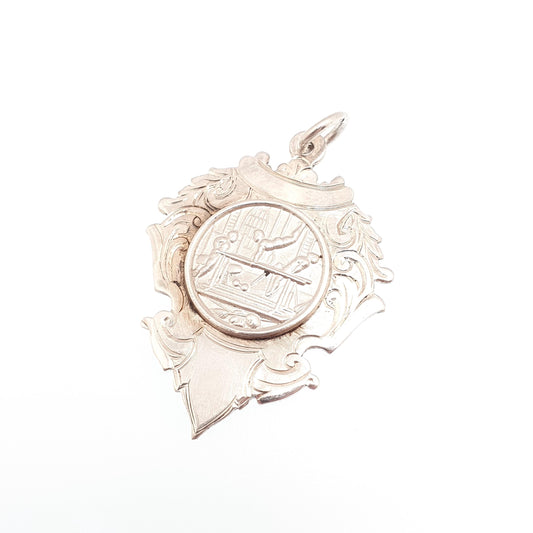 Old Vintage Sterling Silver Fob Pendant Gymnastics Gym Albert Shield Shape Vintage Necklace 1934 Pocket Watch Womens Mens Jewelry Jewellery