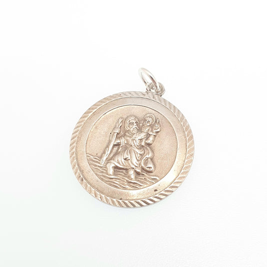 GEORG JENSEN Vintage Sterling Silver St Christopher Pendant Necklace Large Big 1970s Hallmark Saint Travel Jewellery Jewelry Men Women