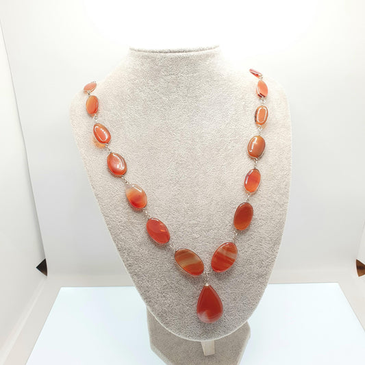 Antique Arts & Craft Carnelian Agate Necklace Y Pendant Lavalier Lavaliere Orange Quartz Lariat Silver Gemstone Women Gift Jewelry Jewellery