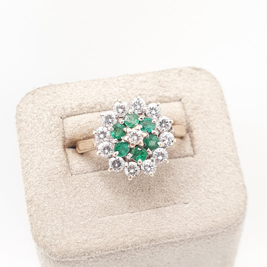 Vintage 9k Gold Emerald Ring Cluster CZ Cubic Zirconia Solid 9ct 375 Hallmarked Estate Fine Jewelry Jewellery Womans Retro Genuine Real