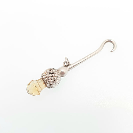 Antique Sterling Silver Button Hook Citrine Thistle Pendant Necklace Scottish Celtic Quartz Buttons Sewing Vintage Jewelry Jewellery