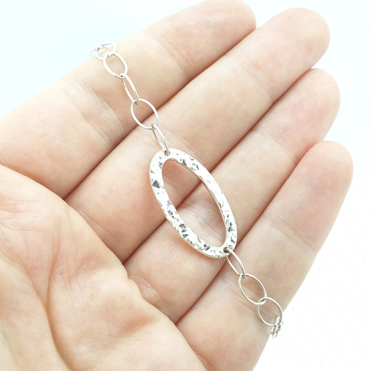 Vintage Sterling Silver Oval Link Bracelet Large Links 21.5cm 8.4" 5.58g Textured Modernist Solid 925 Ladies Women Jewelry Jewellery Elegant