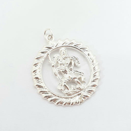 Vintage St Christopher Sterling Silver Necklace Large Pendant Saint Travel Travelling Jewellery Jewelry Round Catholic Christian Mens Womens