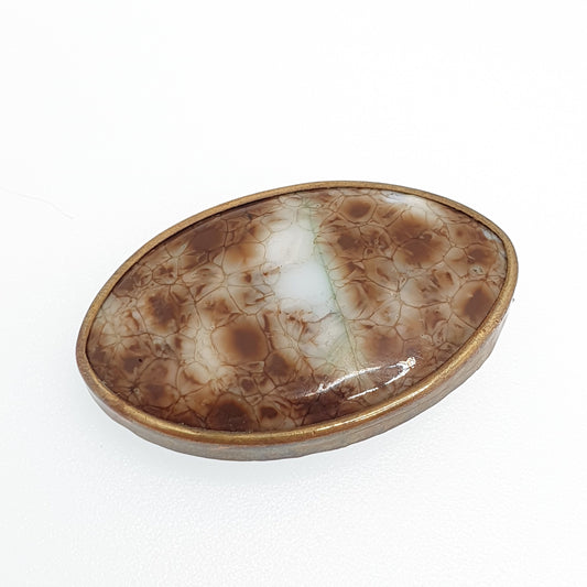 Antique Victorian Agate Glass Brooch Pin Gold Tone Mottled Leopard Big Old Vintage White Brown Costume Jewelry Jewellery 1800s Womens