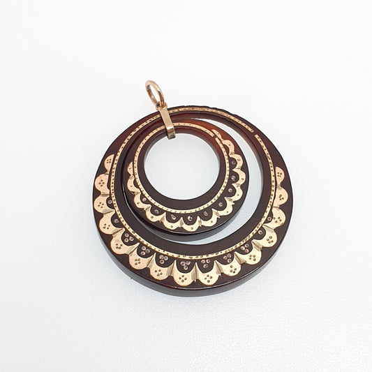 Antique Victorian Pique Crescent Pendant Necklace Gold Inlay 9ct Gold Bail Double Crescents Genuine 1800s Vintage Women Jewelry Jewellery