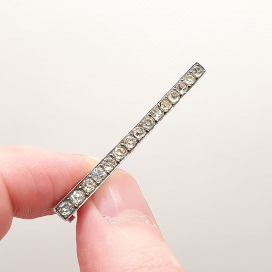 Antique Art Deco Solid Silver Diamond Paste Brooch French Bar Rectangular Vintage 1920s Genuine Sparkly Ladies Womens Jewelry Jewellery