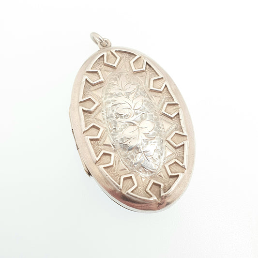Antique Victorian Sterling Silver Pendant Large 1880 Engraved Etruscan Style Necklace Big Solid 925 1800s Vintage Womens Jewelry Jewellery