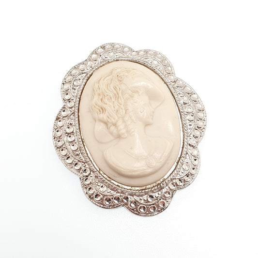 Vintage CHARLES HORNER Sterling Silver Cameo Brooch Pin Genuine Large 1948 Hallmark Faux Shell Pastry Cutter C.H Womens Jewelry Jewellery
