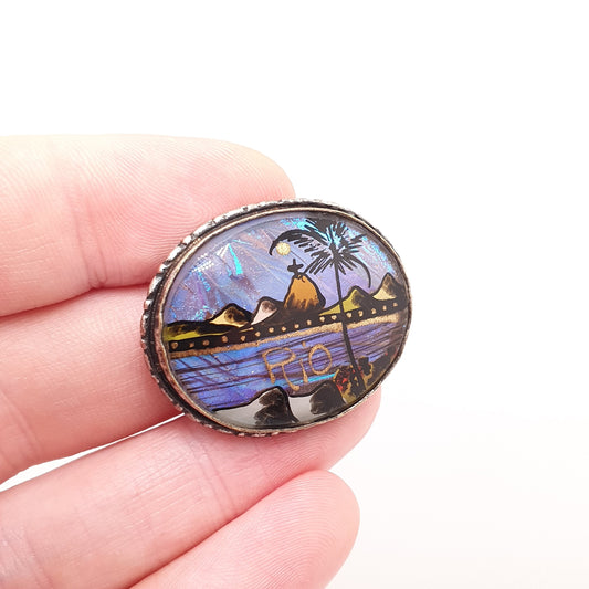 Antique Art Deco Butterfly Wing Brooch Beach Palm Trees Brasil Exotic Holiday Silver Plater Womens Jewelry Handmade Insect Bug Jewelry