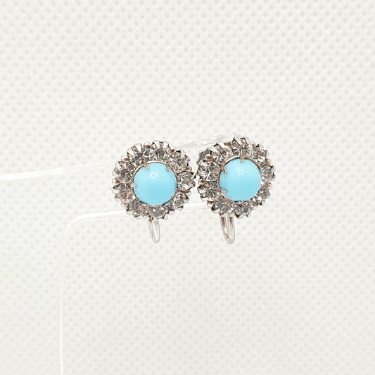 Antique Diamond Paste Sterling Silver Earrings Faux Turquoise Cluster Sparkly Foiled Glass Vintage 1920s Solid 925 Womens Jewelry Jewellery