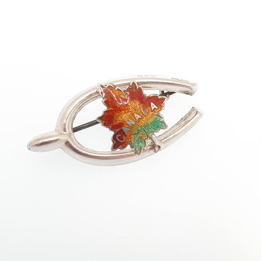 Antique Sterling Silver Canadian Maple Leaf Wishbone Brooch Pin 1909 Hallmark Canada Vintage Good Luck Lucky Womens Jewelry Jewellery