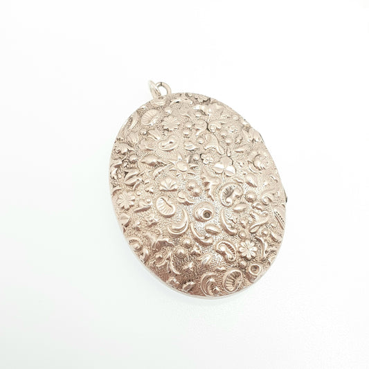 Antique Victorian Solid Silver Locket Shell & Flower Embossed Large Big Oval Pendant Picture Seashell 1800s Vintage Womens Jewelry Jewellery